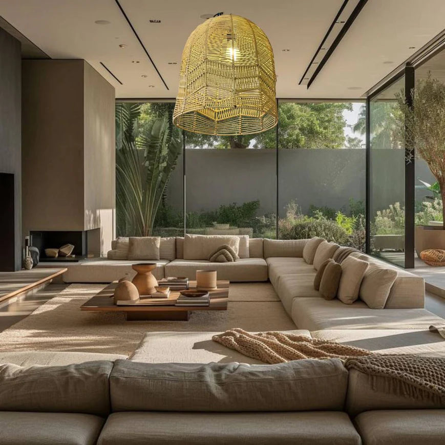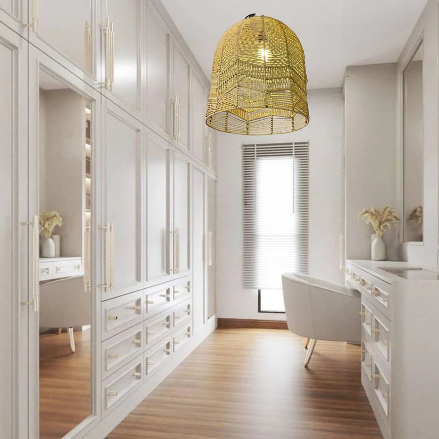 Rustic pendant light fixture handcrafted from natural brown wicker